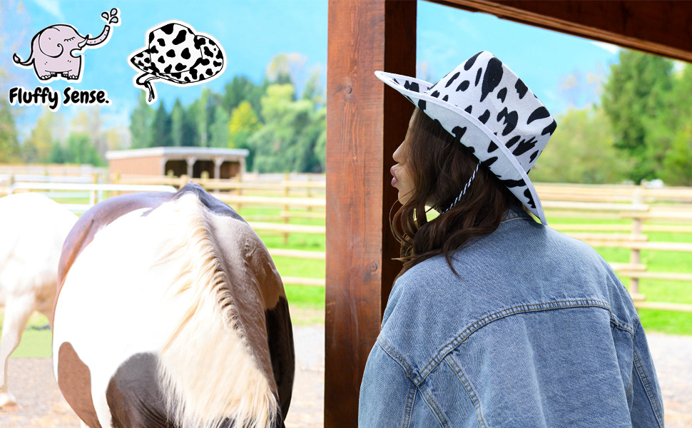 Fluffy Sense Cowgirl Hat Fun Cow Print Cowboy Hat Bachelorette Party Hat Cowgirl Dress Up Party Costume Felt Cowboy Hat At Amazon Men S Clothing Store
